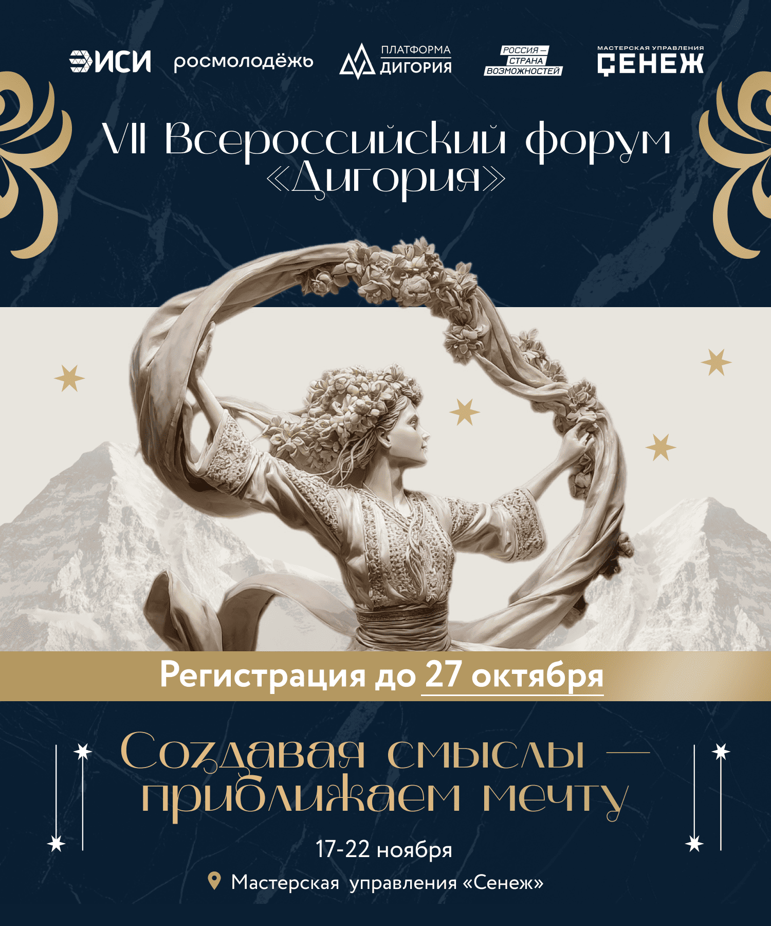 Форум проходит с 17 по 22 ноября в Мастерской управления «Сенеж» президентской платформы «Россия – страна возможностей». Всероссийский форум «Дигория» – это мероприятие, объединяющее ученых и практиков социально-гуманитарного профиля и общественно-политической сферы, а также креативных и цифровых индустрий. За 7 лет Форум стал ключевой площадкой по выработке смысловых ориентиров развития России.